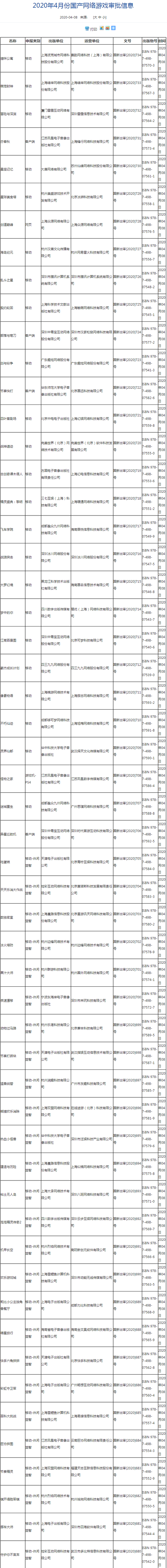2020年第6批国产游戏版号公布,共有55款游戏过审
