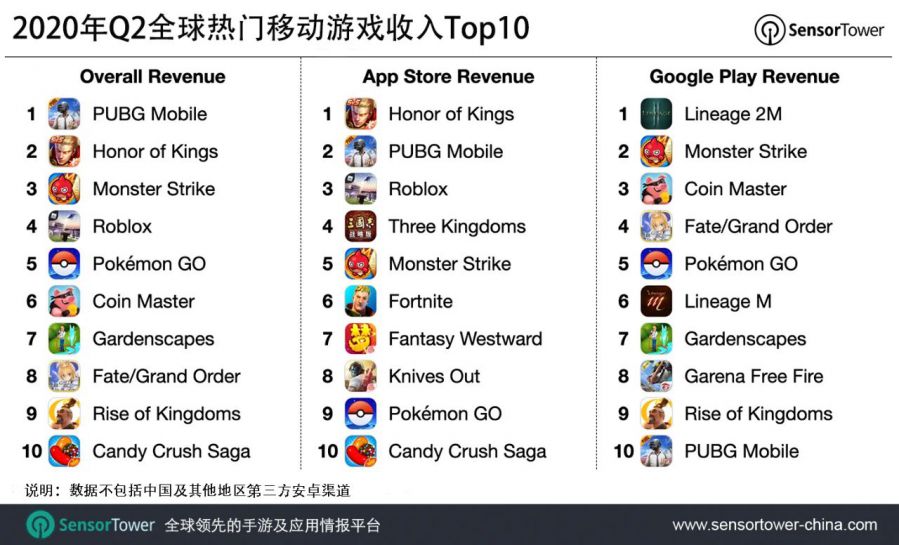 2020年Q2全球移动游戏收入达到193亿美元,同比激增27%
